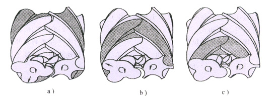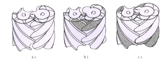 齒間容積與排氣口連通后,排氣過(guò)程開(kāi)始。轉(zhuǎn)子轉(zhuǎn)動(dòng)過(guò)程中,齒間容積不斷減小,將壓縮后的氣體送至排氣管。此過(guò)程一直延續(xù)到該容積達(dá)到最小值為止。