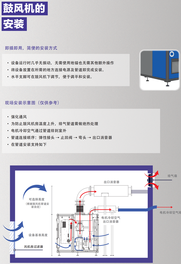 空氣懸浮鼓風機 流量 : 15-600 ?/min 壓力 : 30-100 kPa 噪音度 : 75dB(A)↓ 可選擇顏色 : 橙色 /藍色 / 象牙白 / 灰色 咨詢電話:15666417677